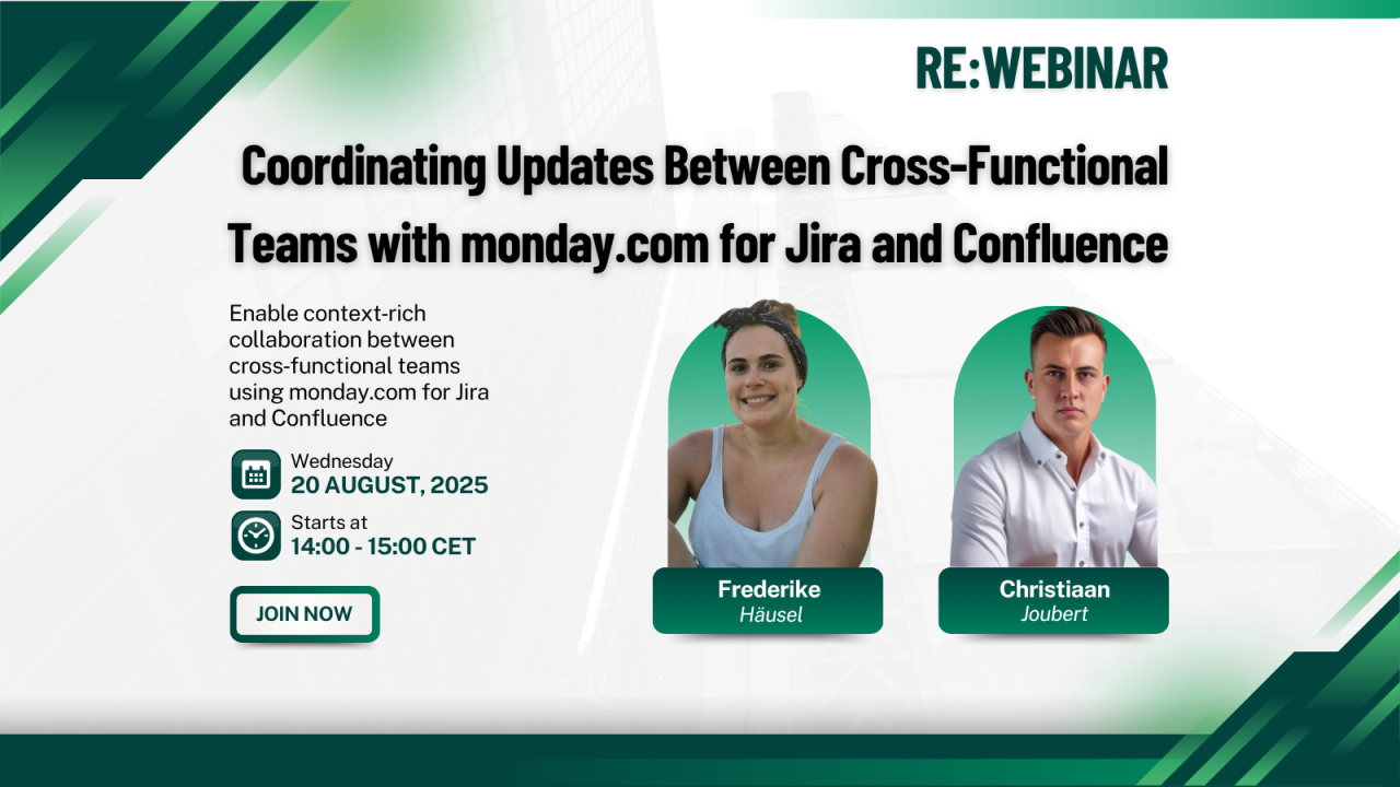 Discover how to connect monday.com, Jira, and Confluence into one seamless workflow. Watch our on-demand webinar to learn how marketing, dev, and documentation teams can stay perfectly aligned with real-time sync, embedded boards, automated Jira issues, and tool-agnostic collaboration. Stream the full recording now.